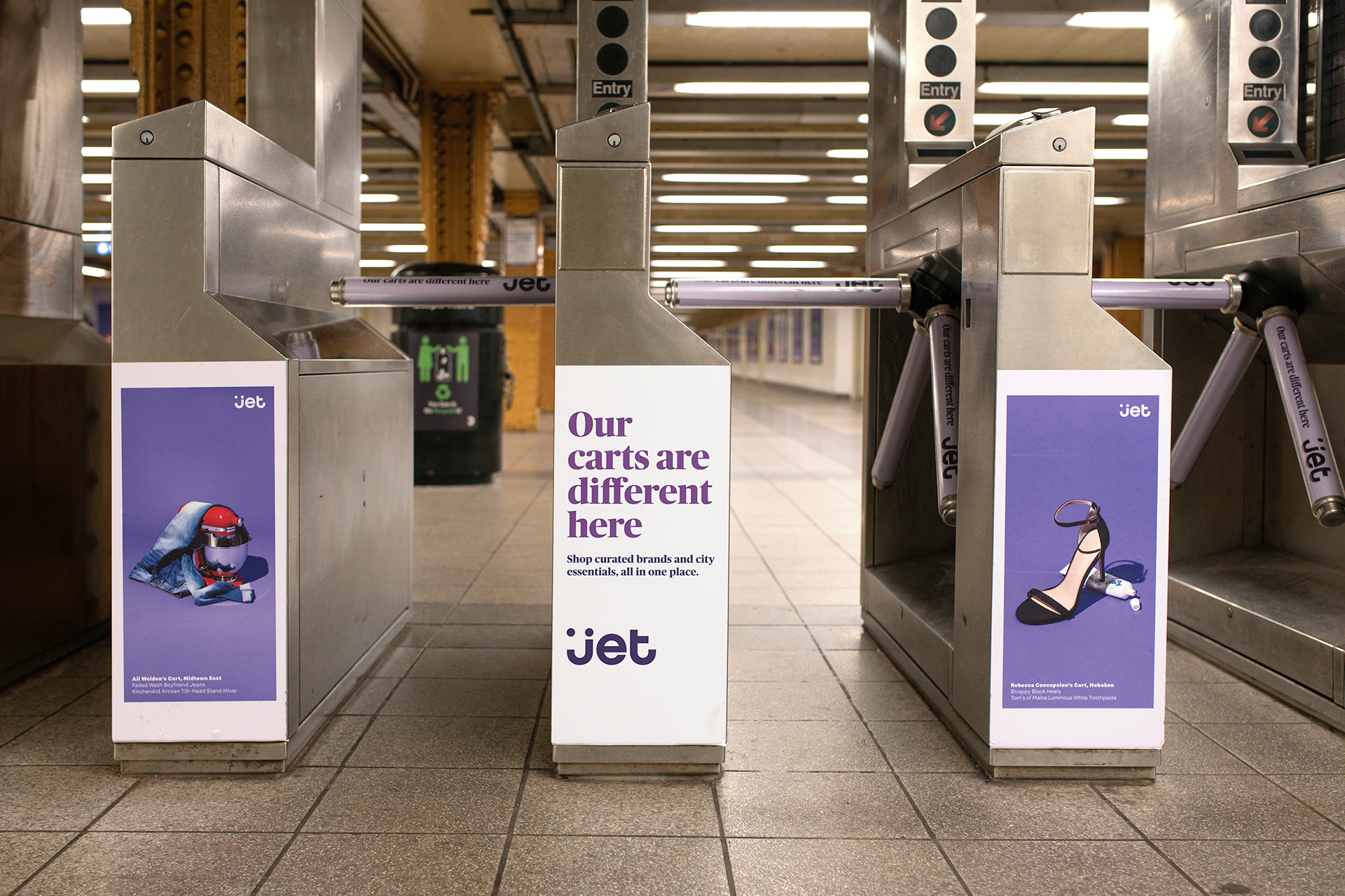 The campaign, "Our Carts are Different Here" launched in NYC, Boston, Philadelphia and DC in the fall of 2018. It included TV, a massive OOH buy, digital audio, and social/digital. The work celebrated Jet's new city target and the way they shop. High fashion, basics, local goods and fresh foods. All in one place.